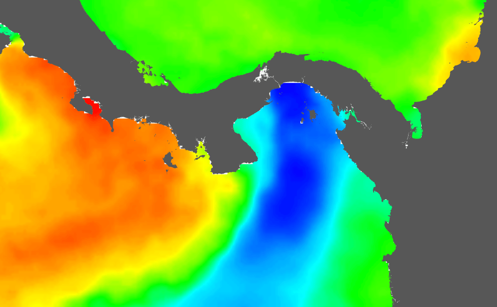 These wind jets push surface waters in the Gulf of Panama south which are then replaced by deep, cold, nutrient-rich waters, supporting biodiversity and fisheries.